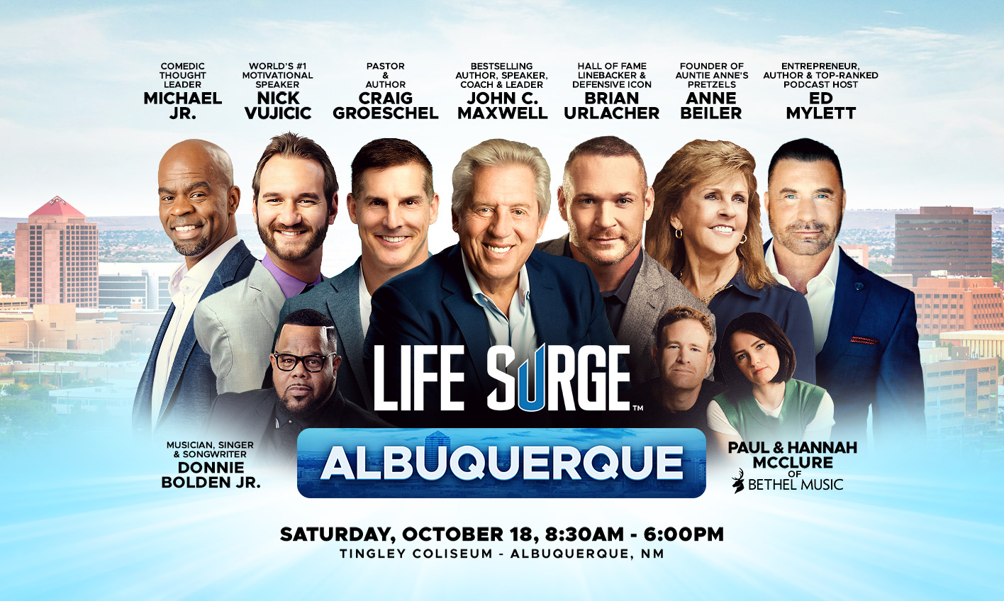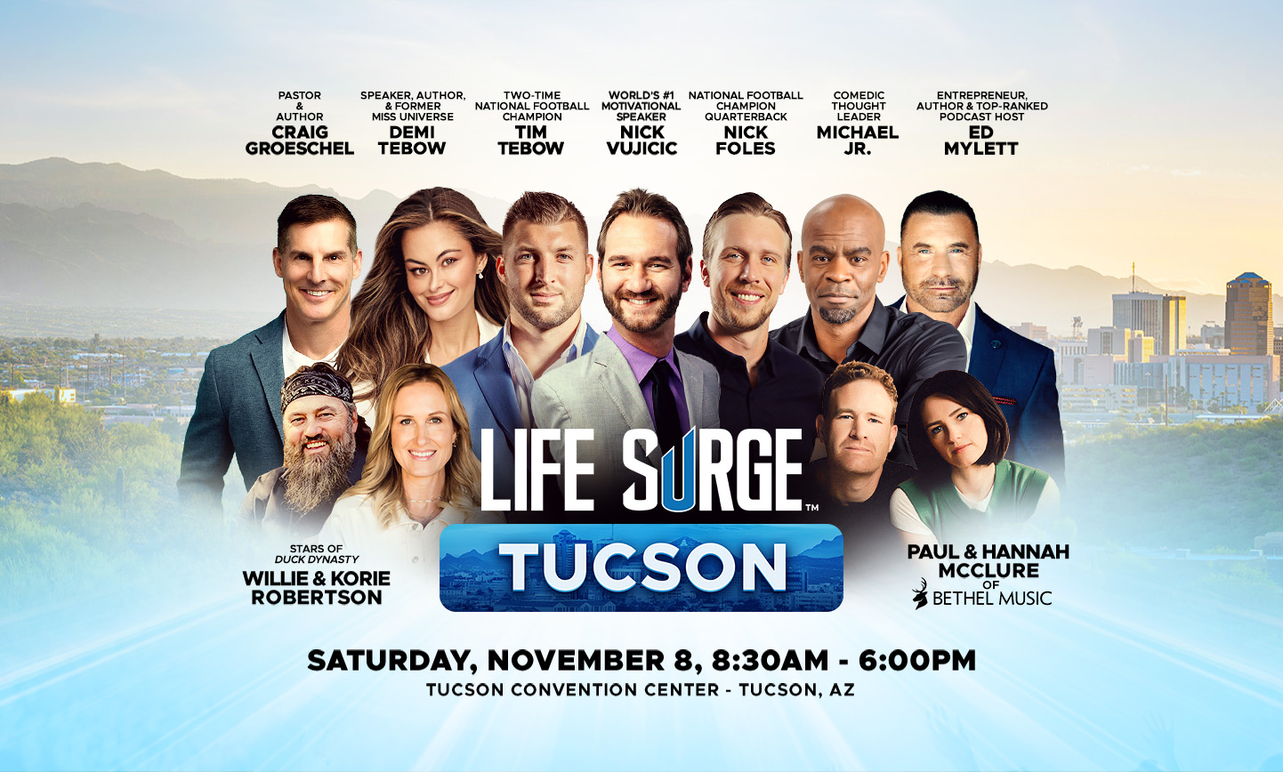 Featuring Bestselling Author, Speaker, Coach & Leader, John C. Maxwell; Two-Time National Football Champion, Tim Tebow; Speaker, Bestselling Author, Entrepreneur & Former Miss Universe 2017, Demi Tebow; the World’s #1 Motivational Speaker, Nick Vujicic; Hall of Fame Linebacker & Defensive Icon, Brian Urlacher; Comedic Thought Leader, Michael Jr.; Pastor & Author, Craig Groeschel; Entrepreneur, Author, and Top-Ranked Podcast Host Ed Mylett; Anne Beiler of Auntie Anne’s Pretzels; Motivational Speakers, Authors and Entrepreneurs The Benham Brothers; 11-time Dove Award-winning and GRAMMY® Nominated Christian Worship Collective Bethel Music; and Many More!